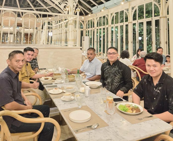 UMKMTV (Solo) – Solihin, penggiat kehutanan dari Kabupaten Bengkalis Provinsi Riau bersama rombongan diundang makan malam bersama keluarga Istana Mangkunegaran Solo di Pracima Tuin Mangkunegaran, Minggu (12/01/2025).