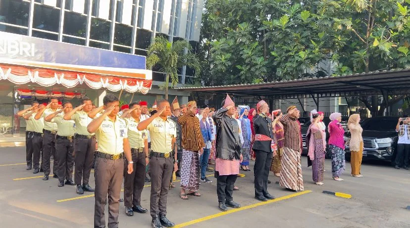 Upacara berlangsung dengan khidmat di halaman Kantor Cabang BRI Bintaro, diikuti oleh seluruh pekerja, mitra kerja, serta petugas keamanan. Yang menarik, para peserta upacara mengenakan busana adat Nusantara sebagai wujud kebanggaan atas keberagaman budaya Indonesia.
